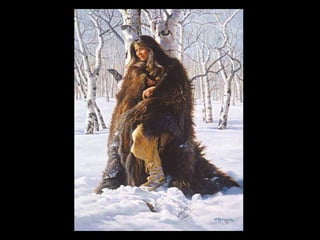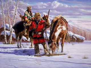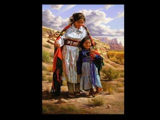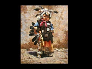 El documento presenta a Alfredo Rodríguez, un pintor mexicano nacido en 1954 especializado en pintar escenas de la vida en las montañas estadounidenses con tramperos, indios y paisajes. Describe su técnica impresionista y dominio del color y el dibujo. Su obra se encuentra en importantes museos y colecciones. Antes pasa a describir brevemente la destrucción de la cultura y población indígena en América del Norte a manos de los colonizadores, con la usurpación de sus tier