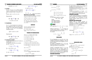 El documento presenta conceptos básicos de álgebra como desigualdades, inecuaciones, intervalos y operaciones con ellos. Introduce las desigualdades, definidas como comparaciones entre números reales usando símbolos como <, >, ≤, ≥. Luego explica inecuaciones, que involucran cantidades desconocidas y solo se verifican para ciertos valores de las incógnitas. Finalmente, cubre temas como intervalos acotados y no acotados, y operaciones entre ellos como unión e intersección.