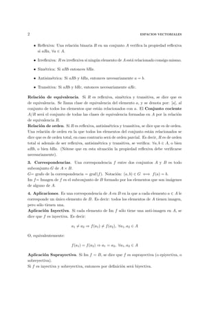 Este documento presenta una introducción a los espacios vectoriales. Primero repasa conceptos básicos de estructuras algebraicas como conjuntos, relaciones binarias, correspondencias y aplicaciones. Luego define los espacios vectoriales como conjuntos con dos operaciones que cumplen ciertas propiedades. Finalmente introduce conceptos como subespacios vectoriales, intersección y suma de subespacios.