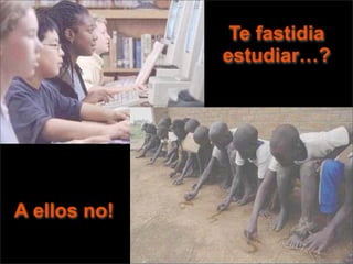 El documento hace una comparación entre los problemas y quejas de las personas afortunadas con la situación de aquellos que no tienen las mismas oportunidades. Alienta a los lectores a ser agradecidos por todo lo que tienen y a tratar de no alimentar el consumismo. Finalmente, los exhorta a quejarse menos y dar más para ayudar a los demás.