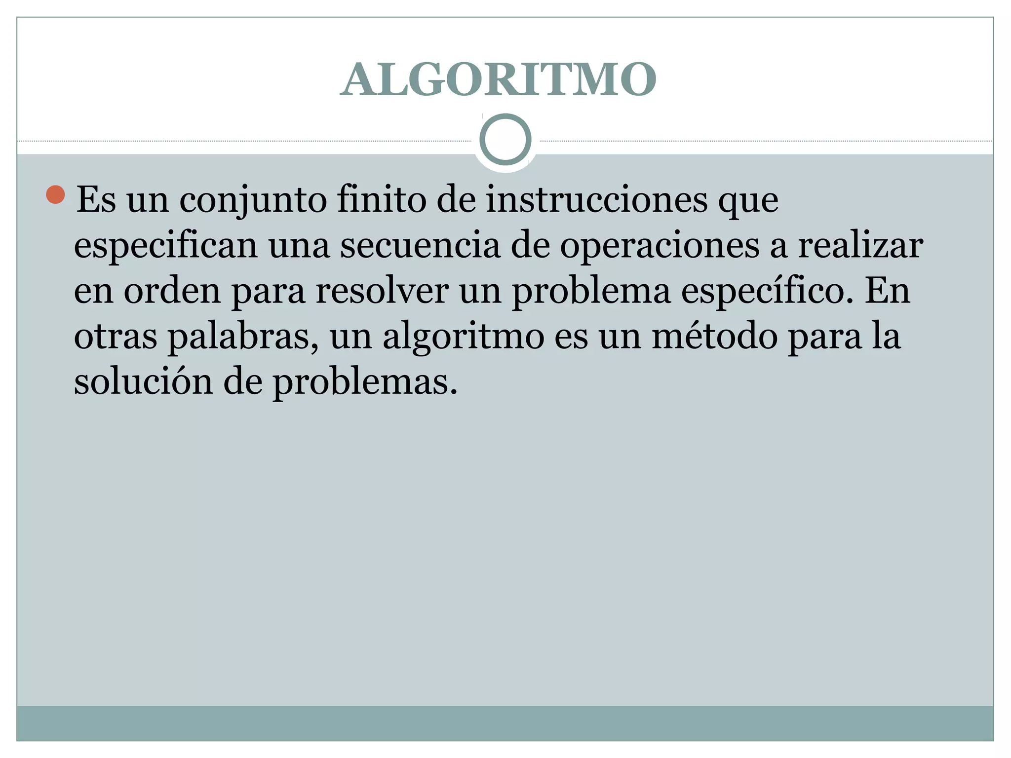 Un algoritmo es un conjunto finito de instrucciones para resolver un problema específico, con características como precisión, finitud y claridad. Existen diferentes tipos de algoritmos, desde cualitativos y cuantitativos hasta deterministas y heurísticos, y su diseño puede realizarse mediante diagramas de flujo o pseudocódigo. La programación estructurada busca dividir problemas en módulos manejables para facilitar su comprensión y solución.