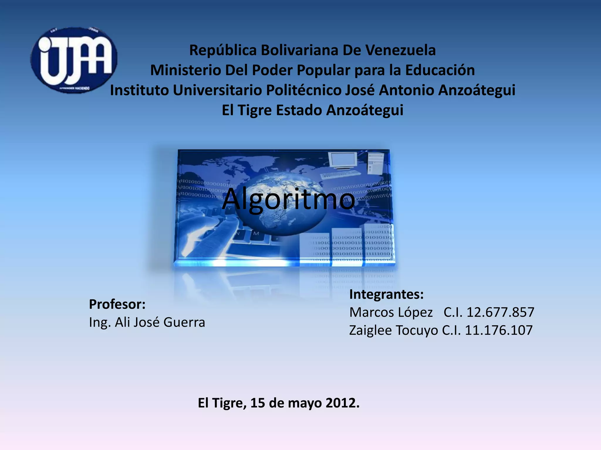 Este documento presenta información sobre algoritmos. Define un algoritmo como un conjunto de instrucciones ordenadas y finitas para realizar una actividad mediante pasos sucesivos que llevan a una solución. Describe características como ser finito, definido, tener entrada y salida. Incluye simbología para diseñar algoritmos y un ejemplo de algoritmo para calcular el área de un cuadrado. Finalmente analiza ventajas y desventajas de los algoritmos.