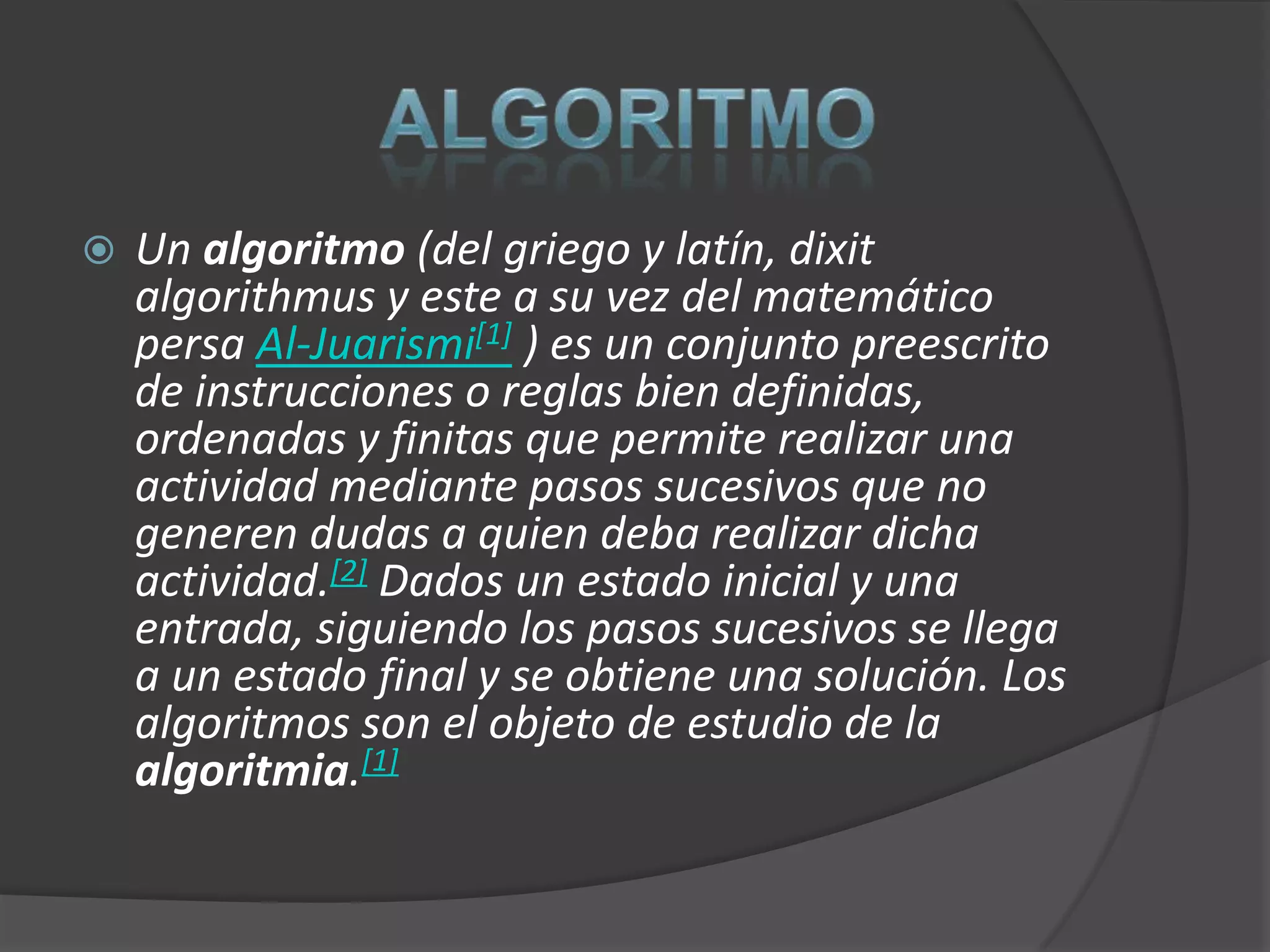 El documento define los conceptos de algoritmo, algoritmo determinista y no determinista. Un algoritmo es un conjunto de instrucciones ordenadas para resolver un problema. Los algoritmos deterministas siempre dan el mismo resultado para una entrada dada, mientras que los no deterministas pueden dar resultados diferentes.
