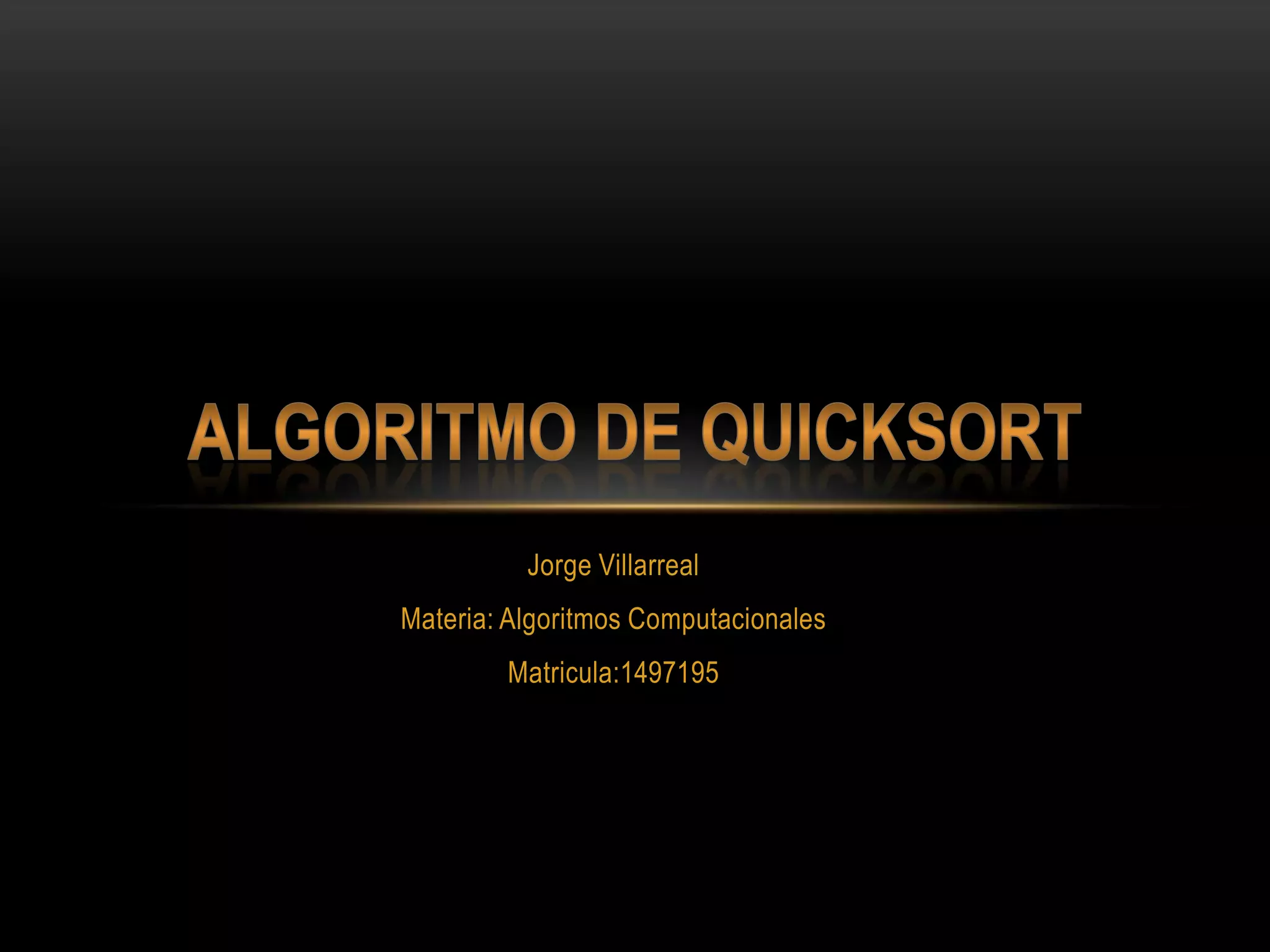 El documento explica el algoritmo de ordenamiento rápido o quicksort. Quicksort ordena una lista de datos dividiéndola recursivamente en sublistas mediante la selección de un elemento pivote y reorganizando los elementos menores y mayores que el pivote en las sublistas correspondientes. El algoritmo tiene un mejor caso de O(n log n) y un peor caso de O(n2). Se provee pseudocódigo y un ejemplo para ilustrar el proceso de quicksort.