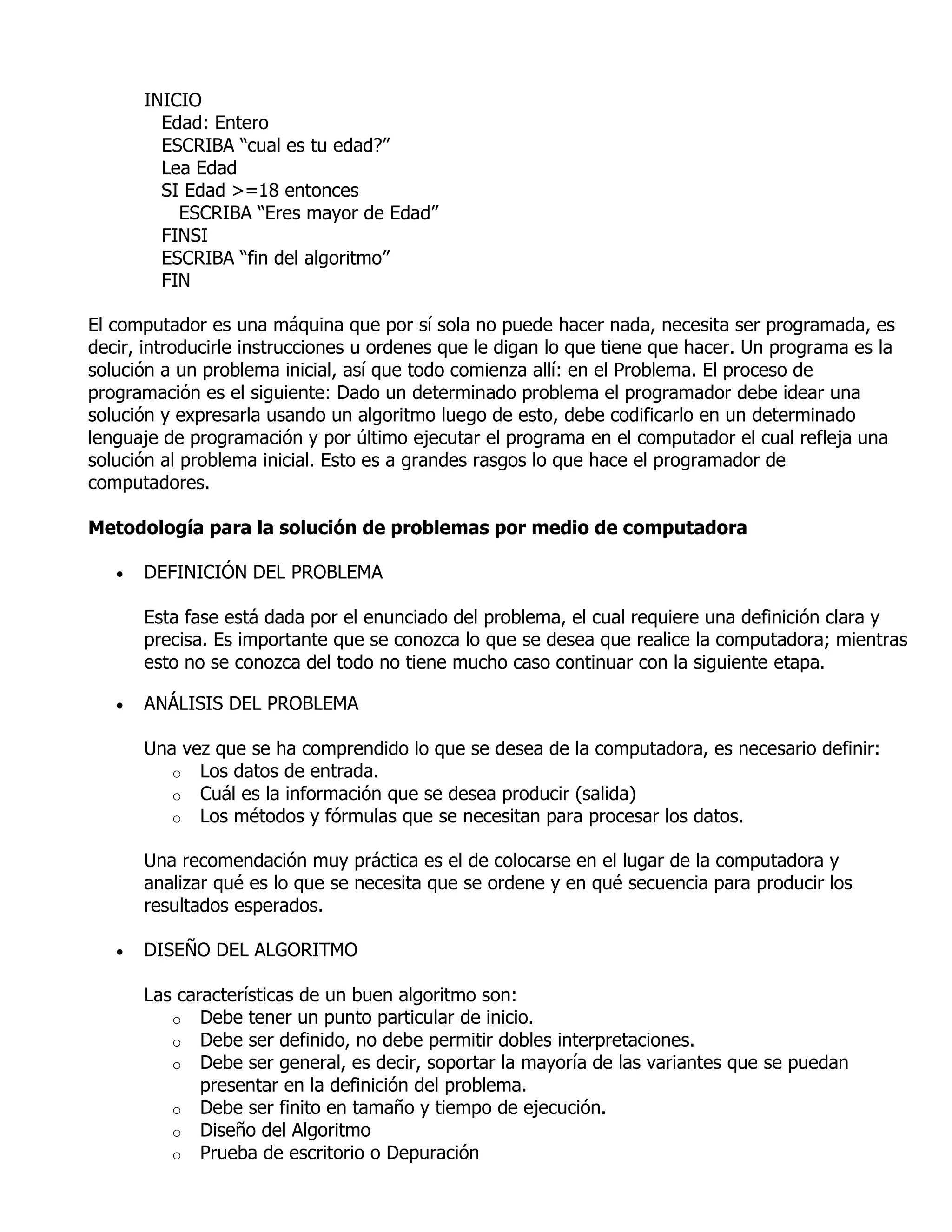 El documento describe los conceptos básicos de los algoritmos y la programación, incluyendo qué es un algoritmo, tipos de algoritmos, lenguajes algorítmicos, variables, constantes, expresiones, operadores, y métodos para diseñar algoritmos como el enfoque top-down y bottom-up.