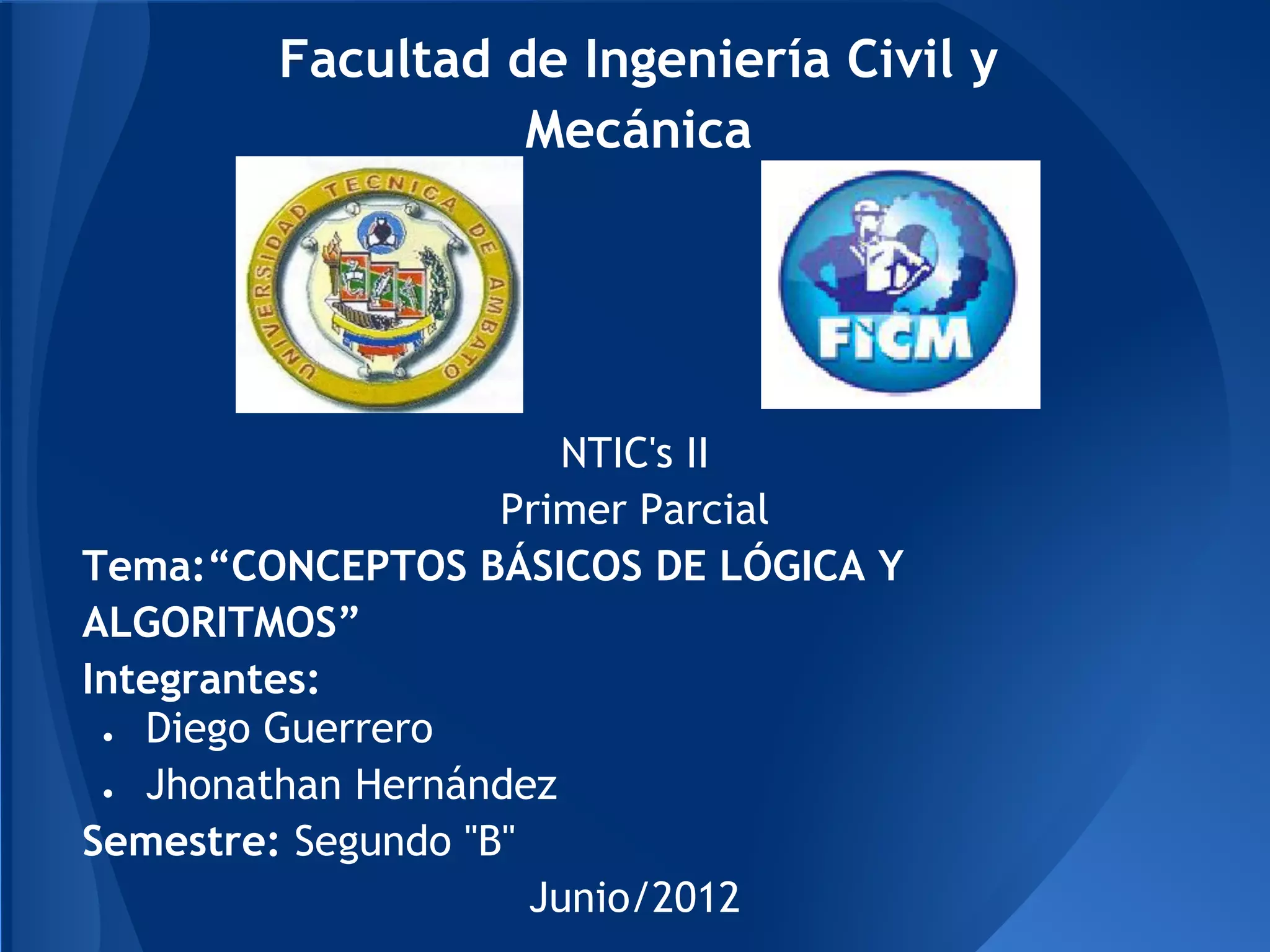 Este documento presenta la información sobre un proyecto de estudiantes sobre conceptos básicos de lógica y algoritmos. Explica las partes de un algoritmo (entrada, proceso y salida), los tipos de algoritmos (cualitativo y cuantitativo), y las características de un algoritmo como ser finito, tener inicio y fin, y ser general. El objetivo es reconocer los conceptos clave de los algoritmos y aplicar estos conocimientos.