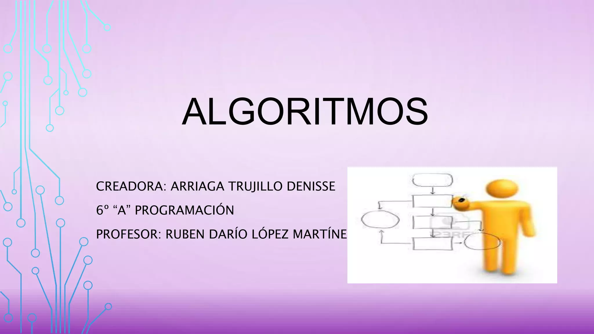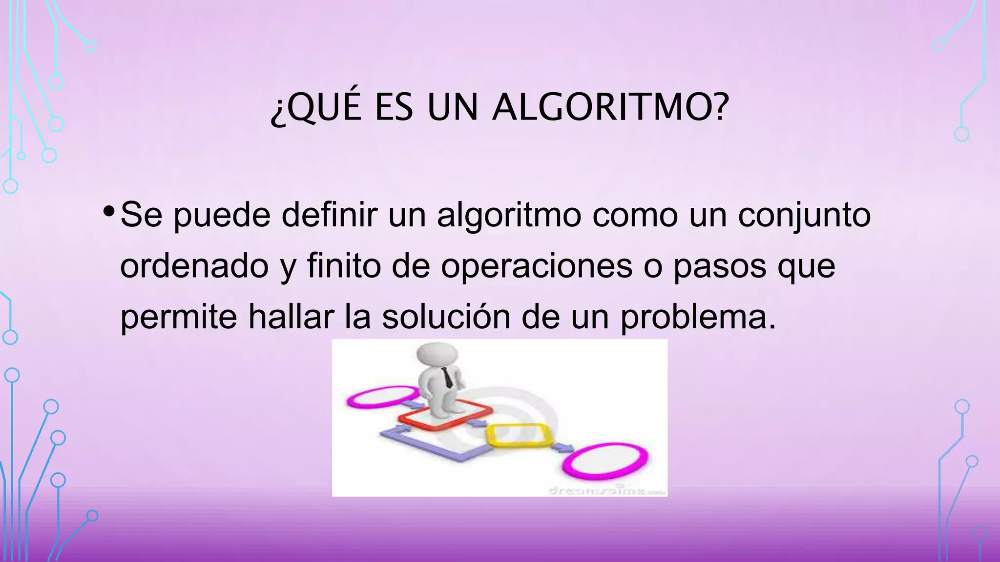 Este documento define un algoritmo y describe sus características principales. Explica que un algoritmo es un conjunto ordenado y finito de pasos para resolver un problema. Existen dos tipos de algoritmos: cualitativos y cuantitativos. También describe formas de representar algoritmos como texto narrativo, diagrama de flujo y pseudocódigo. Además, señala características clave de los algoritmos como ser finitos, tener entrada y salida definidas, y ser efectivos.