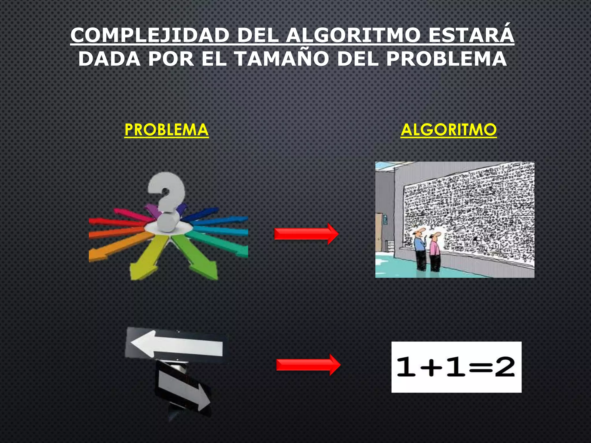 Este documento trata sobre la complejidad de los algoritmos. Explica que la complejidad de un algoritmo depende del tamaño del problema y los recursos necesarios. Se detalla que la complejidad puede medirse en términos de tiempo de ejecución o espacio de memoria requerido. También cubre conceptos como la complejidad en el peor caso, el caso promedio y la notación asintótica para describir cómo cambia la complejidad a medida que aumenta el tamaño del problema.