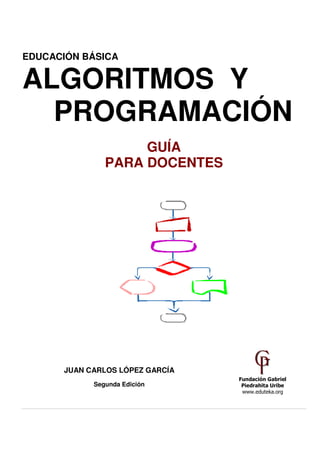 La guía de algoritmos y programación, dirigida a docentes de educación básica, se centra en desarrollar la creatividad y habilidades para resolver problemas en los estudiantes a través de la programación. Se sugiere usar entornos de programación accesibles que fomenten el pensamiento algorítmico y matemático, además de integrar temas de ciencias naturales mediante proyectos prácticos. También se enfatiza la importancia de preparar a los estudiantes para un entorno globalizado, cultivando habilidades de pensamiento de orden superior desde temprana edad.