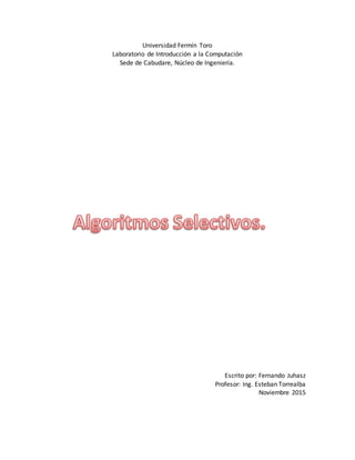 Este documento presenta dos algoritmos. El primero determina si un número ingresado es par o impar. El segundo calcula el aumento de sueldo para trabajadores universitarios en función de su tiempo de servicio, el cual puede ser de 1 a 5 años, 5 a 10 años, 10 a 20 años o 20 años o más, con porcentajes de aumento diferentes para cada rango de años de servicio.