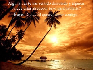 El documento describe varias situaciones en las que Dios interviene sutilmente en la vida de las personas, como dar deseos de ayudar a otros, consolar a los derrotados, resolver problemas de forma inesperada, dar fuerzas para continuar, y poner las cosas en su lugar. Insta al lector a poner su fe en Dios y compartir este mensaje con otros para recordarles que Dios bendice a diario a quienes creen en Él.