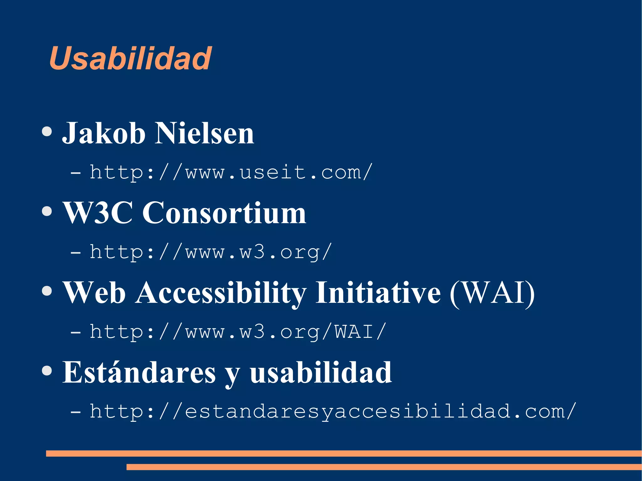 Este documento proporciona recursos útiles para el diseño web organizados en las siguientes categorías: usabilidad, diseño y composición, fotografía, tipografía, logotipos e iconos, colores, JavaScript y utilidades. Incluye enlaces a sitios web populares que ofrecen información, herramientas y contenido gratuito sobre cada una de estas áreas importantes del diseño web.