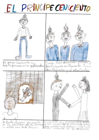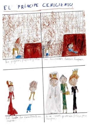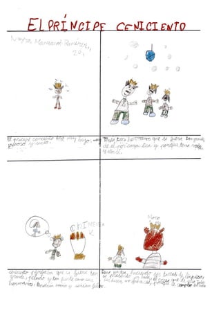 El documento presenta una selección del cómic "El Príncipe Ceniciento" que trata sobre cómo las personas imaginan el fin del mundo, con escenarios apocalípticos que van desde desastres naturales hasta guerras nucleares.