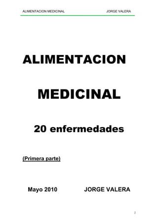 El documento habla sobre la alimentación medicinal y proporciona recomendaciones para tratar problemas como la acidez estomacal, dispepsia, indigestión y mal aliento. Se detallan alimentos recomendados y prohibidos, así como hierbas y recetas de cocina para ayunos. El objetivo es tratar estos problemas con alimentación y hierbas de manera natural y efectiva.