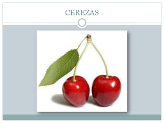 Este documento lista diferentes tipos de alimentos, incluyendo frutas como cerezas, fresas, kiwi, melocotón, melón, naranjas y manzanas; verduras como lechuga, tomates, patatas, pepino y zanahorias; carnes como pollo, filetes y salchichas; mariscos como gambas y sardinas; y otros alimentos como chocolate, galletas, pan, tartas, yogurt, leche, huevos, queso, zumo, chorizo, jamón y pescado.