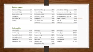 El documento proporciona información nutricional y de ingredientes para varios productos como Twix, leche Hit de mango y mayonesa. Detalla los ingredientes principales de cada producto, incluidos el chocolate, harina de trigo y aceite de palma en Twix, leche entera, pulpa de mango y vitaminas en la leche Hit, y aceite vegetal hidrogenado, huevos y vinagre en la mayonesa. También incluye tablas de composición nutricional para cada producto.