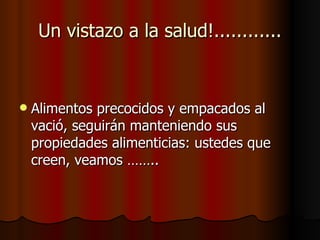 Este documento discute los pros y contras de los alimentos precocinados. Señala que aunque son prácticos, carecen de nutrientes, contienen aditivos y engordan más que la comida casera. Recomienda comer principalmente alimentos naturales frescos para prevenir enfermedades cardiovasculares y gástricas. Concluye enfatizando la importancia de una dieta balanceada rica en frutas y verduras, ejercicio regular y estilo de vida saludable para mantener un organismo sano.