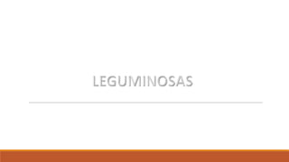 Este documento presenta información sobre las leguminosas y los alimentos de origen animal. Describe las leguminosas como una familia de plantas que incluye muchas especies utilizadas como alimento debido a su alto contenido nutricional. También clasifica los alimentos de origen animal y analiza su contenido de proteínas, grasas, vitaminas y minerales, señalando ejemplos de alimentos con bajo, moderado y alto contenido de grasa.