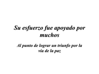 El documento habla sobre Mahatma Gandhi y su filosofía de resistencia civil no violenta. Gandhi luchó contra la opresión de los pobres en la India Británica sin usar armas, logrando la independencia a través de la paz. El documento también incluye varias frases atribuidas a Gandhi sobre temas como la no violencia, la tolerancia, la verdad y el cambio social.