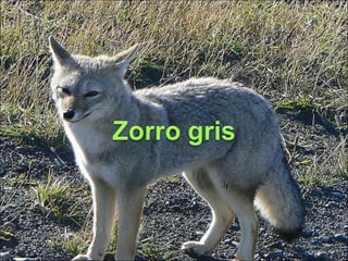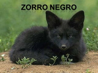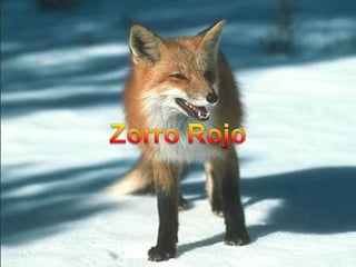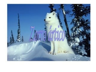 El documento describe varias especies de zorros, incluyendo el zorro ártico, gris patagónico y negro. Proporciona detalles sobre las características, hábitats y distribuciones de estas especies, con un enfoque más detallado en el zorro ártico. También compara las huellas de los perros y zorros, y discute la representación cultural de los zorros.