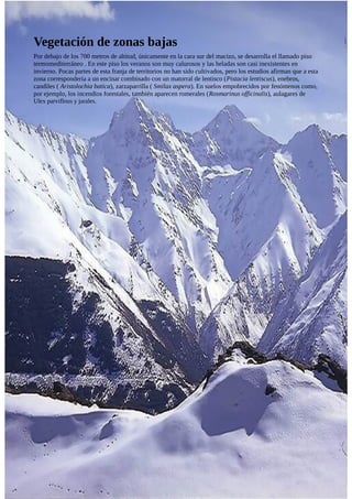 La Sierra Nevada es un macizo montañoso situado en el sureste de España que alcanza una altitud máxima de 3.482 metros. Debido a su aislamiento y altitud, desde el final de la última glaciación la Sierra Nevada se ha convertido en refugio de numerosas plantas endémicas, con 166 especies vegetales endémicas. La flora de la Sierra Nevada incluye especies propias de latitudes más frías debido a su papel como refugio durante las glaciaciones.