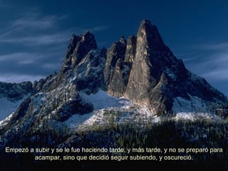 Un alpinista decidió subir solo una montaña de gran altura para conseguir la gloria individual. Debido a su ambición, no se preparó adecuadamente y se quedó atrapado en la montaña durante la noche. Al resbalar cerca de la cima, cayó por un acantilado pero fue salvado por la soga que lo amarraba. Una voz le dijo que cortara la soga para salvarse, pero el alpinista se negó y murió congelado a solo dos metros del suelo, aferrado a la soga que lo sostenía. La histor