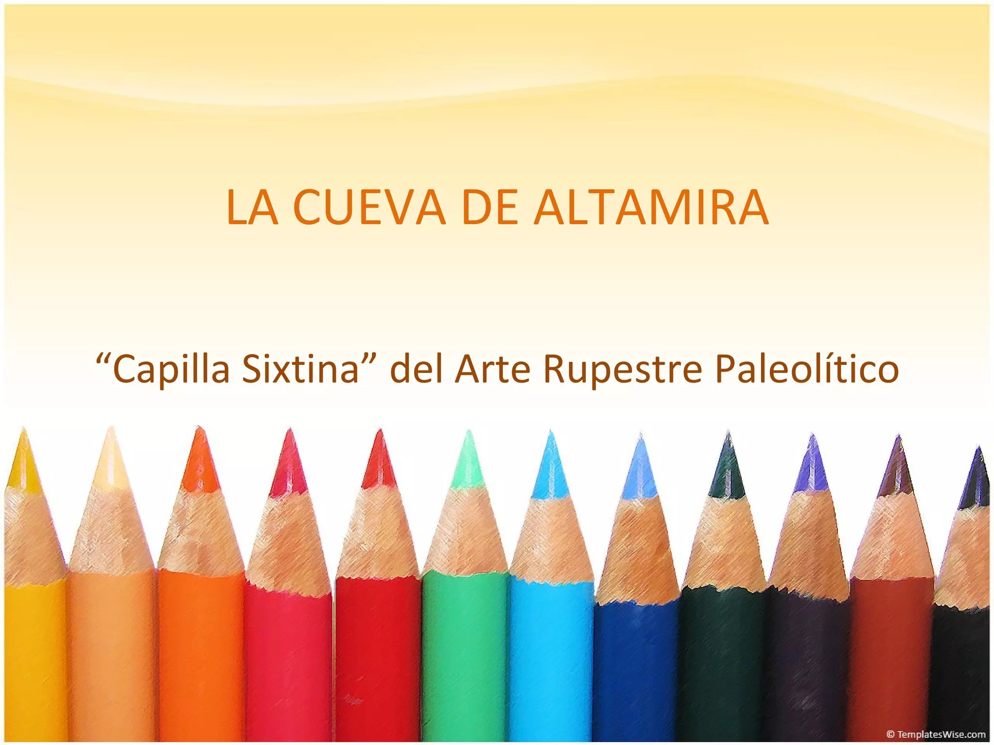 La cueva de Altamira en Cantabria contiene uno de los conjuntos de pinturas rupestres más importantes del Paleolítico Superior, con representaciones realistas de bisontes, caballos y otros animales. Fue descubierta en 1879 pero su antigüedad no fue aceptada inicialmente. Actualmente se protege la cueva original mediante una réplica para visitantes, preservando así la "Capilla Sixtina del arte prehistórico".