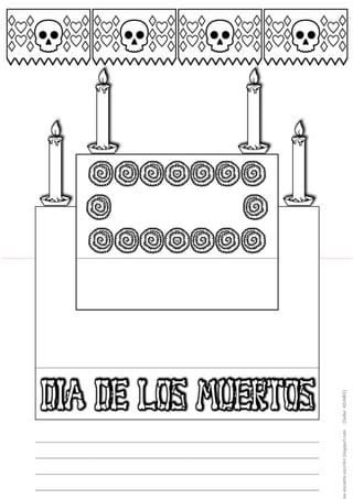 El documento proporciona instrucciones para hacer un altar para el Día de los Muertos en una tarjeta de tamaño A4. Se pide a los estudiantes que usen su creatividad para diseñar el altar dentro del espacio dado y que incluyan una calaverita. Se ofrecen dos modelos de altares para que los estudiantes elijan uno para hacer.