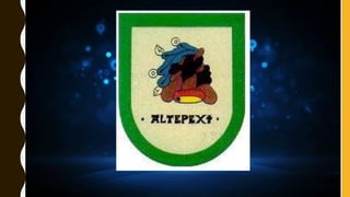 Este documento proporciona información sobre Altepexi, Puebla, México. Resume la población, las principales tradiciones y costumbres como el Día de Muertos y las fiestas patrias, el traje típico, la gastronomía local que incluye mole de guajolote y tamales, y las danzas típicas como los antiaguitos y el jarabe. El documento también incluye un álbum fotográfico y un video sobre Altepexi.