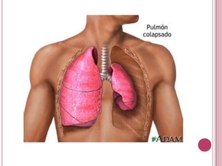 Este documento describe varias alteraciones del tórax, incluyendo la osteocondritis esternocostal, escapula alada, tórax en tonel, tórax arqueado, hemotórax y neumotórax. Explica las causas, síntomas y tratamientos de cada condición. También menciona pruebas como la tomografía computarizada de tórax y la radiografía de tórax que se pueden usar para diagnosticar problemas del tórax.