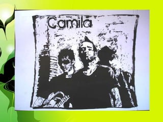 El documento describe la técnica de enmascaramiento para lograr alto contraste en una pintura. Explica que el alto contraste se logra utilizando solo los tonos más oscuros y más claros sin tonos intermedios. Detalla los materiales necesarios como cartulina, jebe líquido, tinta china e imágenes en alto contraste y los pasos del procedimiento, que incluyen transferir la imagen a la cartulina, cubrir las zonas claras con jebe líquido, aplicar la tinta china en toda la superficie y retirar el jebe para revelar