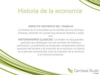 El documento resume diferentes perspectivas históricas sobre cómo se ha dividido la historia de la humanidad. Menciona que los historiadores clásicos dividen la historia en prehistoria e historia. También describe visiones subjetivas que dividen la historia en tres etapas cíclicas, y cómo la filosofía puede verse como una serie de etapas espirituales. Explica que otra forma de dividir la historia es por los medios de producción dominantes, mencionando el comunismo primitivo, esclavismo, feudalismo y capitalismo. Brevemente