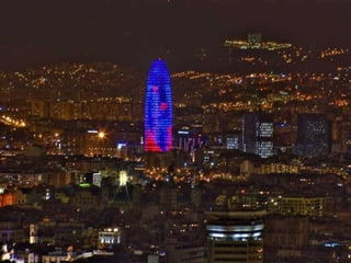 Este documento presenta una lista de lugares y atracciones turísticas populares en Barcelona, España. Incluye lugares como el Puerto Olímpico, la playa de Barceloneta, la Rambla, la catedral, la Sagrada Familia, y obras arquitectónicas icónicas de Antoni Gaudí como la Casa Batlló, La Pedrera y el Parque Güell.
