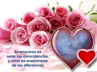 El documento habla sobre el amor y las relaciones. Explora conceptos como enamorarse de las coincidencias y diferencias de otra persona, el deseo de ayudar al otro a ser quien es, y la felicidad que proviene de no sentirse perdido. También discute la conexión íntima que surge al hacer el amor y el regocijo por la mera existencia del ser amado. Alienta a amar a alguien por lo que realmente es, no por su potencial, y apoyar que su verdadera esencia salga a la luz.