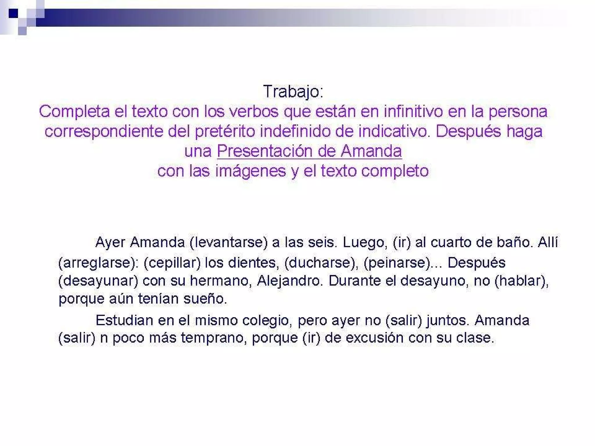 Amanda se levantó temprano, se arregló y desayunó con su hermano Alejandro en silencio debido al sueño. Amanda salió antes para una excursión escolar mientras que Alejandro asistió a la escuela más tarde.