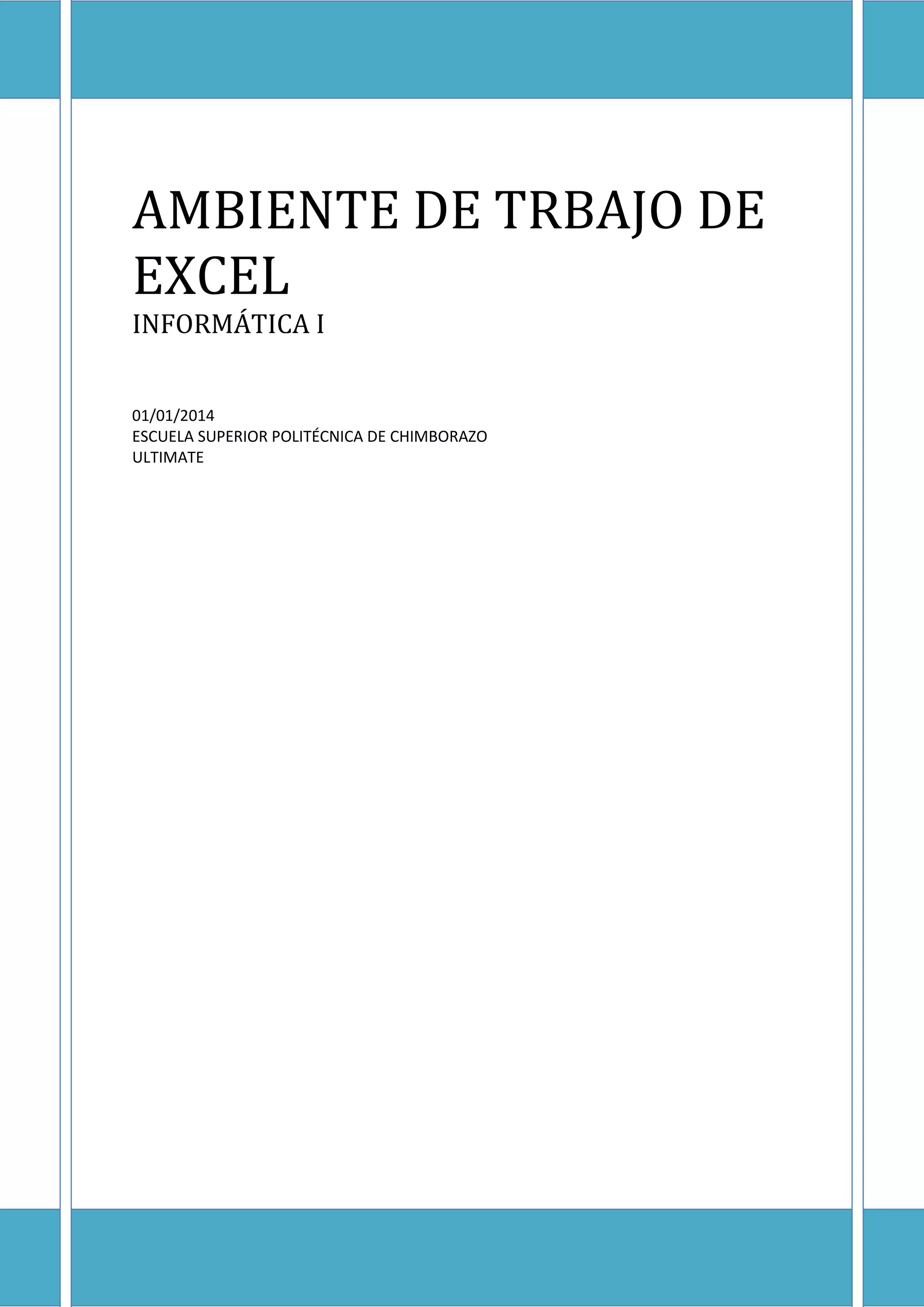 Este documento proporciona una introducción a las funciones básicas de Microsoft Excel. Explica las partes principales de la interfaz de usuario como la barra de título, menús, herramientas y área de trabajo. También describe cómo abrir y guardar archivos, desplazarse entre hojas y celdas, seleccionar rangos de celdas, introducir datos de texto y números, y realizar acciones básicas como deshacer y rehacer. El objetivo es familiarizar a los usuarios con el entorno de Excel y sus capacidades fundamentales.