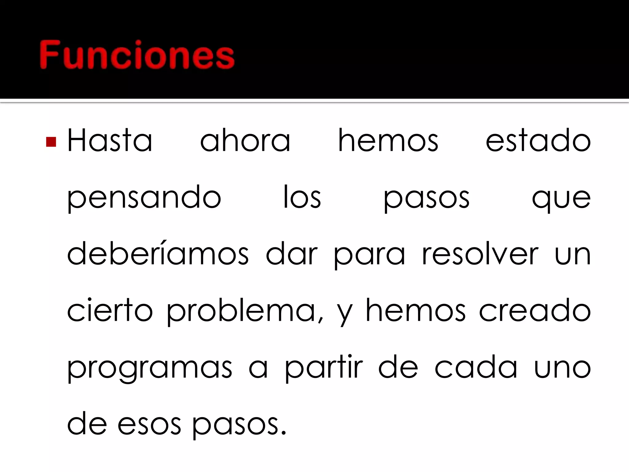 El documento describe cómo descomponer un problema complejo en subproblemas más pequeños llamados "trozos de programa" o funciones, para facilitar el desarrollo de software. Cada persona puede encargarse de implementar una función, y luego integrarlas. Las funciones permiten dividir el trabajo y hacer los programas más legibles y modulares.