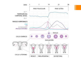 Este documento resume las definiciones, causas y evaluación de la amenorrea. Define la amenorrea como la ausencia de la menstruación durante 3 meses o menos de 9 ciclos al año. Explica las causas como el síndrome de ovario poliquístico, la amenorrea hipotalámica y la hiperprolactinemia. Describe la evaluación del paciente incluyendo exámenes físicos, ultrasonidos y niveles hormonales como FSH y PRL. Resalta causas como falla ovárica prematura y amenorrea hipotal