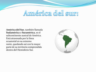 Sudamérica se extiende al sur de la línea ecuatorial y comprende países como Perú, Argentina y Chile. El Perú limita con Ecuador, Colombia, Brasil, Bolivia y Chile. Argentina está organizada como una república federal con 23 provincias y la ciudad autónoma de Buenos Aires como su capital. Chile se encuentra en el extremo sudoeste de Sudamérica, limitando con el océano Pacífico y la cordillera de los Andes.