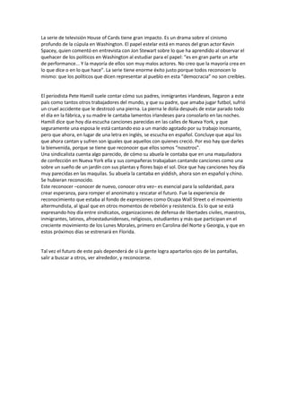 Este documento discute cómo la sociedad estadounidense se ha vuelto más aislada con las personas pasando más tiempo en línea y menos tiempo interactuando en persona. Sin embargo, también proporciona varios ejemplos de cómo las personas de diferentes orígenes a veces se reconocen y conectan entre sí, como una mujer china cediendo su asiento a una familia afroestadounidense en el metro de Nueva York. El documento argumenta que este reconocimiento del "otro" es esencial para la solidaridad y para mejorar el futuro del país.