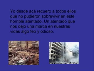 Este documento conmemora el atentado terrorista a la Asociación Mutual Israelita Argentina (AMIA) en 1994 que dejó 85 personas muertas. Se enumeran los nombres de las víctimas y se exige justicia por este horrible crimen. A pesar de pasar 16 años, todavía no se ha logrado justicia para las 85 familias destrozadas.