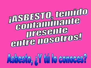 El documento describe los peligros del asbesto para la salud humana. El asbesto es un mineral silicato que se ha utilizado ampliamente en la construcción debido a sus propiedades aislantes e incombustibles. Sin embargo, las fibras de asbesto pueden causar enfermedades graves como asbestosis, mesotelioma y cáncer de pulmón cuando son inhaladas. El documento también explica los equipos de protección necesarios para manipular de forma segura el asbesto y su eliminación como residuo peligroso.