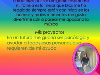La autora describe a su familia como lo más hermoso que Dios le ha dado y que siempre están con ella en los buenos y malos momentos. Ella planea convertirse en profesora de preescolar una vez que termine la secundaria porque se identifica mucho con los niños. Ella también considera a los niños como parte de su familia.