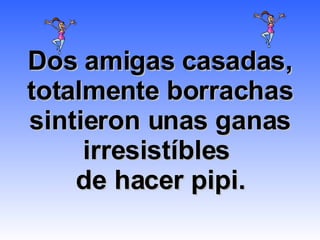 Dos amigas borrachas se detuvieron en un cementerio para orinar ya que necesitaban ir al baño urgentemente. La primera usó y desechó su pantaleta para secarse, mientras que la segunda usó una cinta de una corona floral en una tumba para no mojar su pantaleta costosa. Al día siguiente, uno de sus maridos llamó al otro para contarle que su esposa había vuelto a casa borracha y sin pantaletas, mientras que el otro compartió que su esposa había vuelto con una cinta en su cuerpo con un