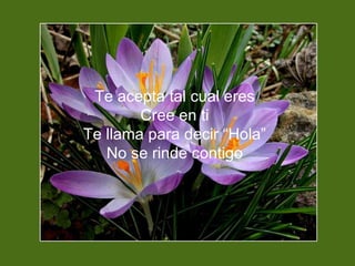 Un amigo acepta a la persona tal como es, cree en ella y la apoya incondicionalmente. Un amigo verdadero perdona los errores, ayuda a levantarse cuando cae, y está presente para ofrecer su apoyo y comprensión.