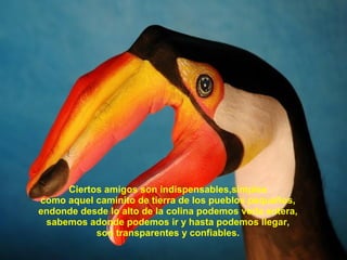 El documento reflexiona sobre la importancia de la amistad, comparando a los amigos con diferentes tipos de caminos en la vida. Destaca cómo algunos amigos son indispensables y confiables, mientras que otros pueden llevar a situaciones inesperadas o dejar una nostalgia profunda. En última instancia, enfatiza que los verdaderos amigos son esenciales para no sentirse solos y que el tiempo compartido con ellos es valioso.