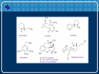Las aminas son compuestos derivados del amoníaco donde uno o más grupos alquilo o arilo están unidos al nitrógeno. Pueden clasificarse como primarias, secundarias o terciarias dependiendo del número de sustituyentes unidos al nitrógeno. Las aminas primarias y secundarias pueden formar puentes de hidrógeno intermoleculares, mientras que las terciarias no. Las aminas desempeñan funciones importantes en los organismos vivos como hormonas, neurotransmisores y medicamentos.