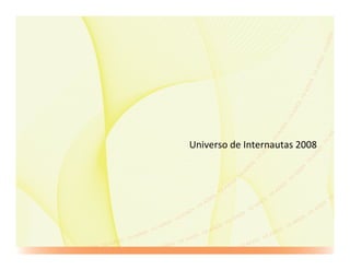 Este documento presenta los resultados clave de un estudio sobre los hábitos de los usuarios de Internet en México. En 2008 había 27.6 millones de internautas en México, con una tasa de penetración nacional del 29.7%. La mayoría de los internautas, 22.7 millones, vivían en zonas urbanas. Más de la mitad de las computadoras con acceso a Internet fueron adquiridas en hogares. El perfil típico del internauta mexicano es una persona de 56% masculina y 44% femenina, y el nivel socioe