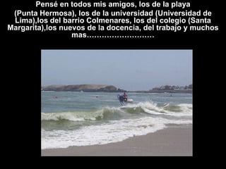 El documento expresa gratitud hacia todos los amigos a lo largo de la vida del autor, enumerando diferentes tipos de amigos y cualidades que los hacen únicos. El autor agradece a sus amigos por aceptarlo y compartir su vida juntos durante más de 50 años, señalando que forman parte importante de sus recuerdos.