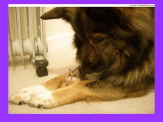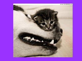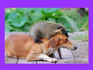Este documento presenta varias historias de amistades improbables entre animales salvajes y humanos. Incluye ejemplos como tigres huérfanos cuidados por monjes budistas en Tailandia, un leopardo y un ratón que se hicieron amigos, perros encadenados que se volvieron compañeros de juego de humanos, un bebé hipopotamo que se aferró a una tortuga como madre sustituta después de un tsunami, y un joven que crió un oso grizzly. La moraleja es que todos los seres vivos necesitan am